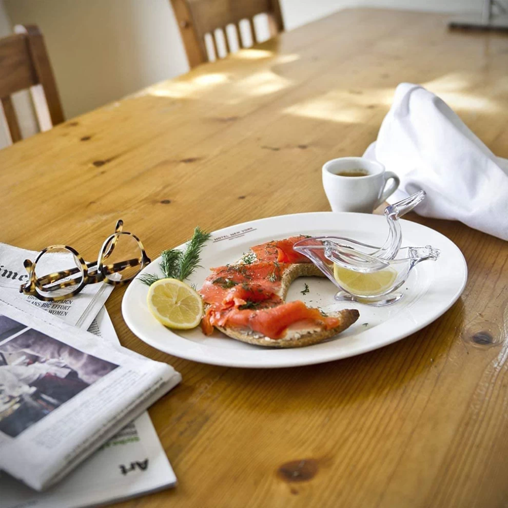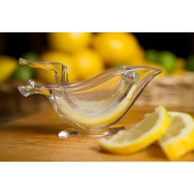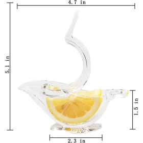 Lemon slice squeezer comes in unique boat shape and clear acrylic. Very special gift for family and friends. Lemon press hand juicer is crystal transparent and easy to operate. No sticky fingers when squeezing a lemon slice. The juicer presser is also easy to clean and dishwash safe. This is a very beautiful tabletop lemon presser. Lemon juicer bird shape is a good decoration for your kitchen dinning.