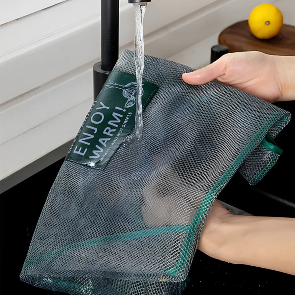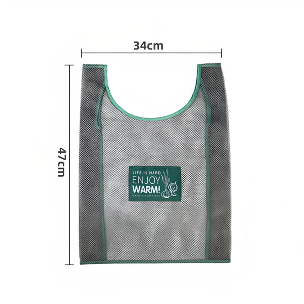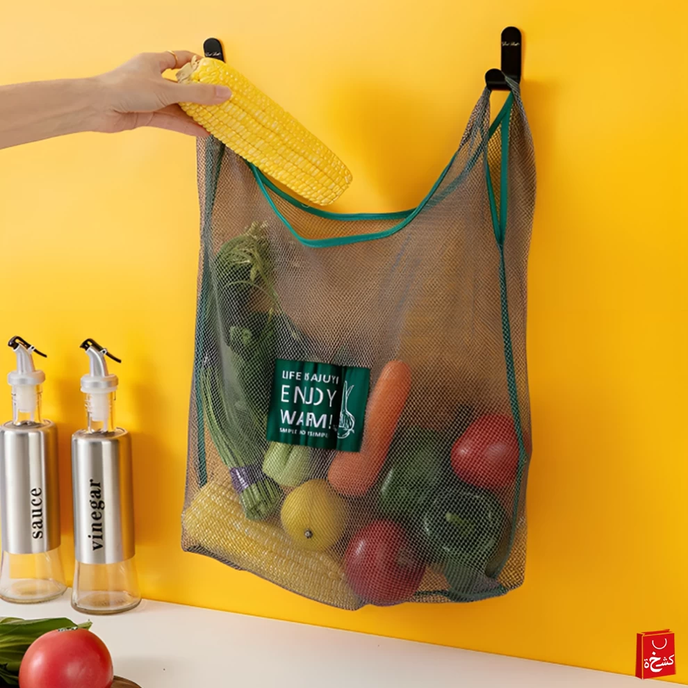 The hanging mesh storage bag is made of the highest quality standards and can accommodate a large number of goods, such as fur, large pieces or long vegetables