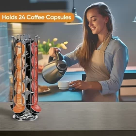 •  Simple and elegant - coffee capsule storage rack keeps all your coffee capsules in one place for easy access and tidy arrangement.