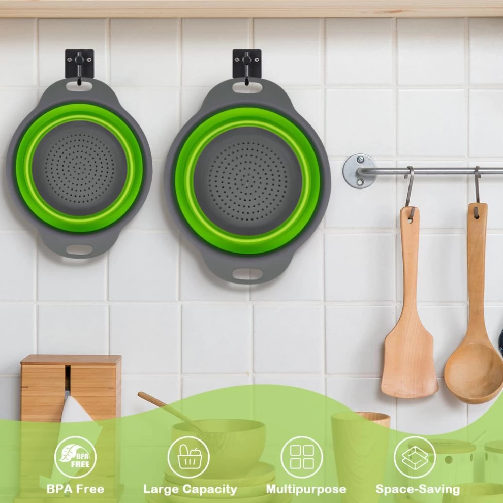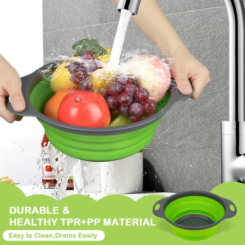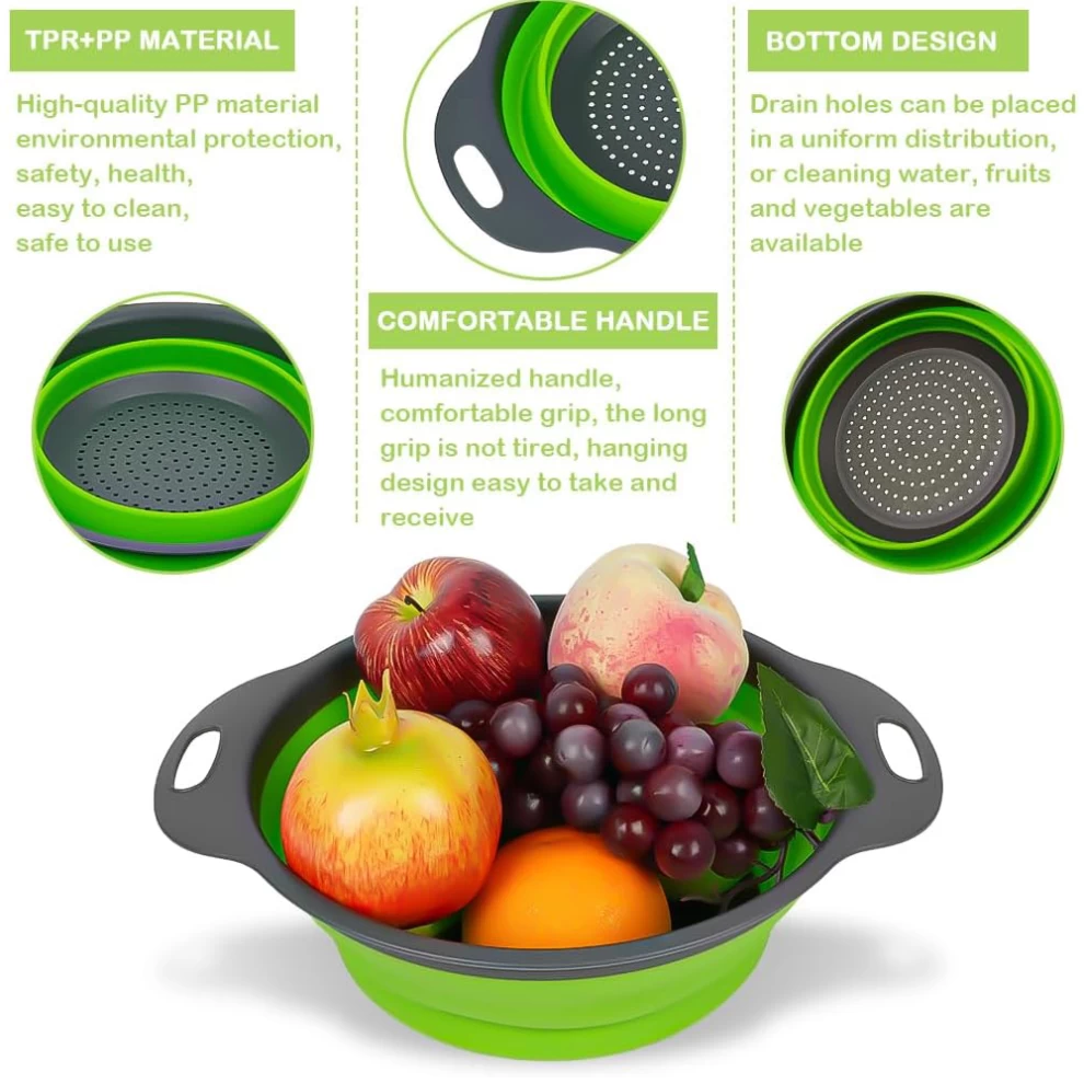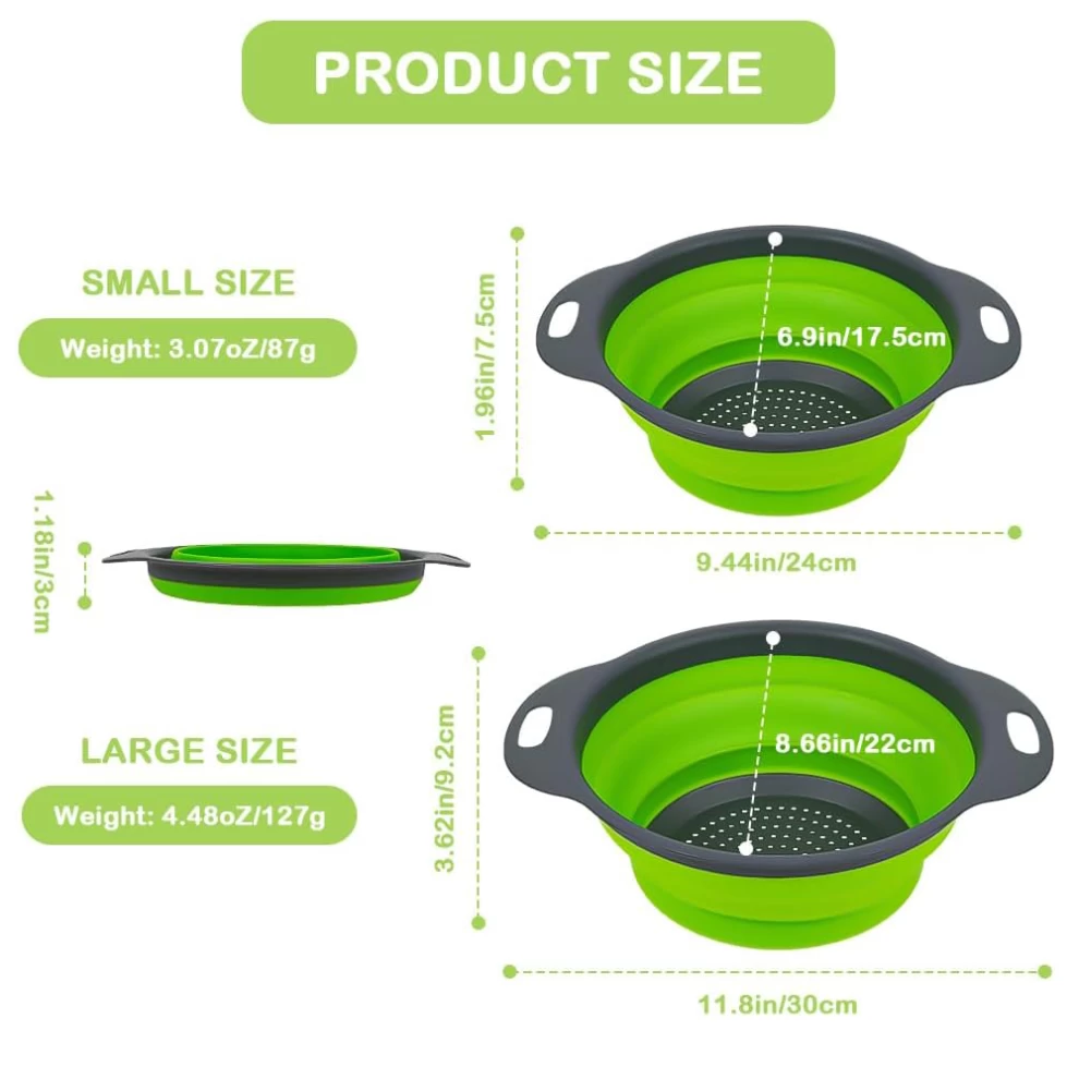 Round Collapsible Strainer Colander is ergonomic and space-saving design. The filters are collapsible, so they don't take up much space in your kitchen cupboards