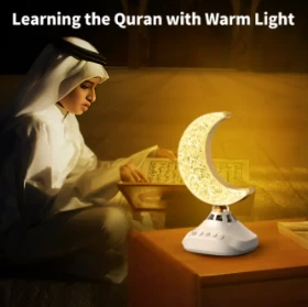 Bring spirituality into your space with the Bluetooth Quran LED Lamp, a multi-functional Islamic lamp that offers Quran recitation by 30 renowned reciters, 18 language translations, Hadith collections, and Islamic supplications. With Bluetooth connectivity, remote control access, and customizable LED lighting, this lamp is a perfect companion for daily prayers, Quran listening, and relaxation.