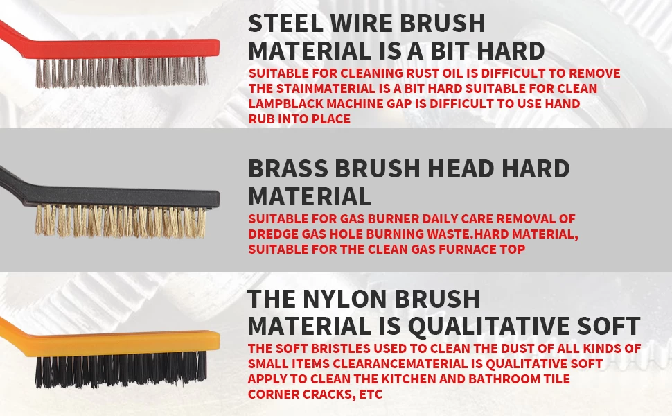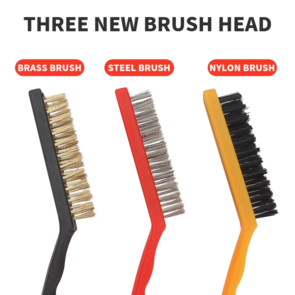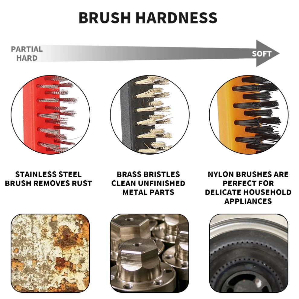 • 🧼 3 Brush Types – Nylon, brass & steel for different surfaces