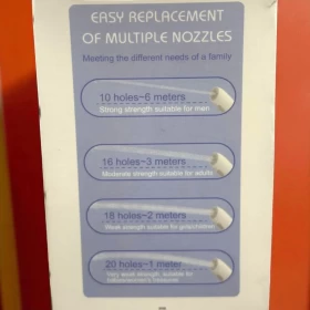 Adjustable Spray Strength & Distance – 10 holes (up to 6m), 16 holes (up to 3m), 18 holes (up to 2m), 20 holes (up to 1m).