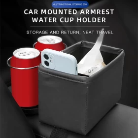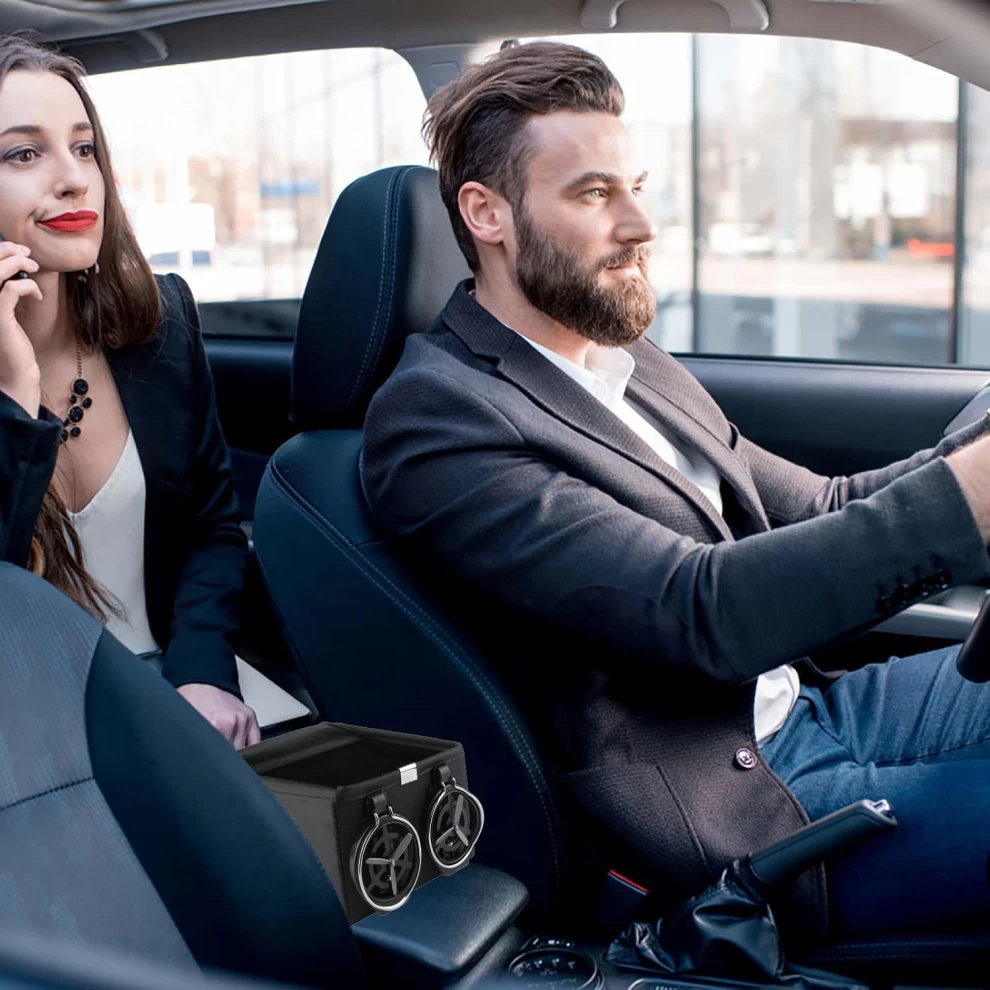 Car Storage Box Organizer Two Collapsible Cup Holders