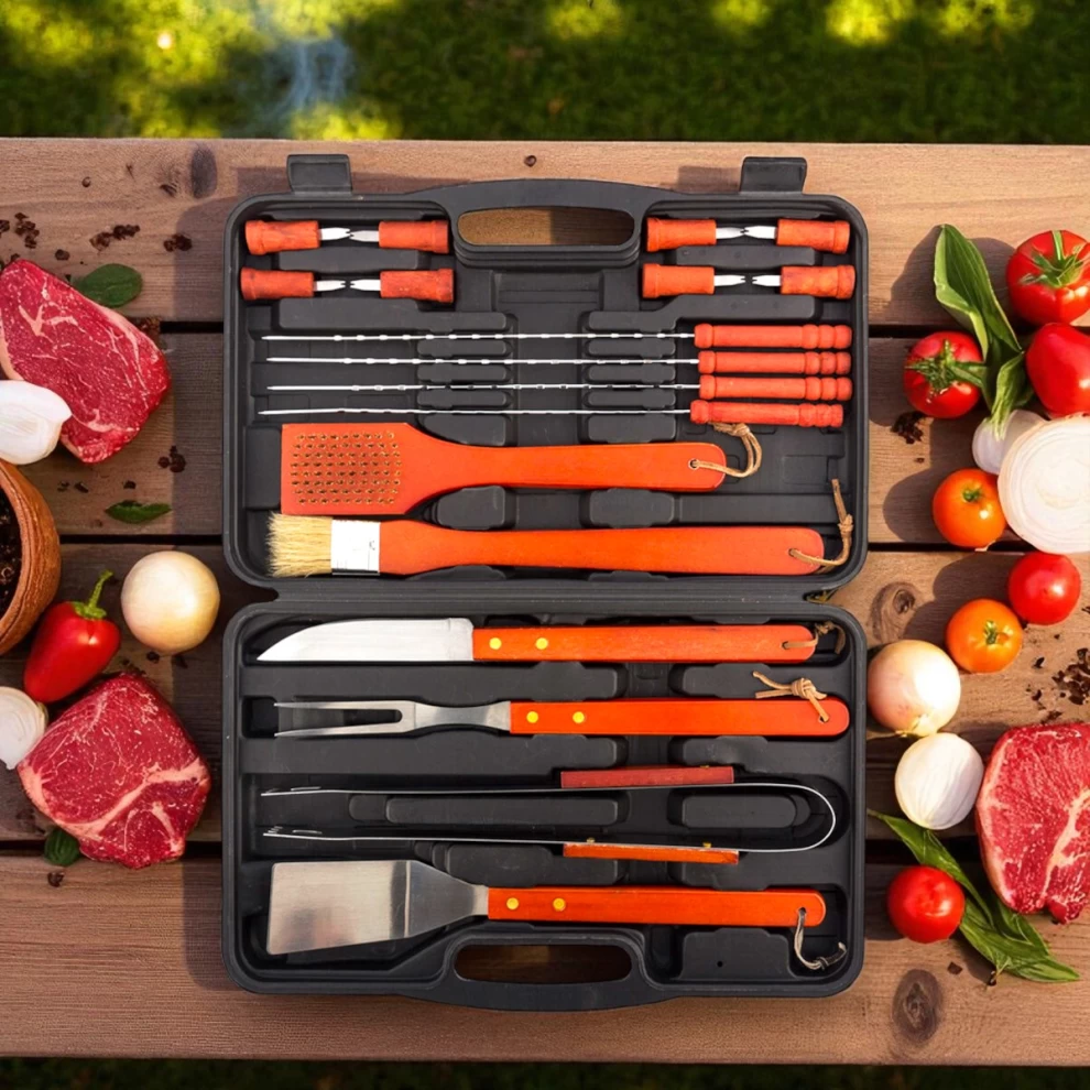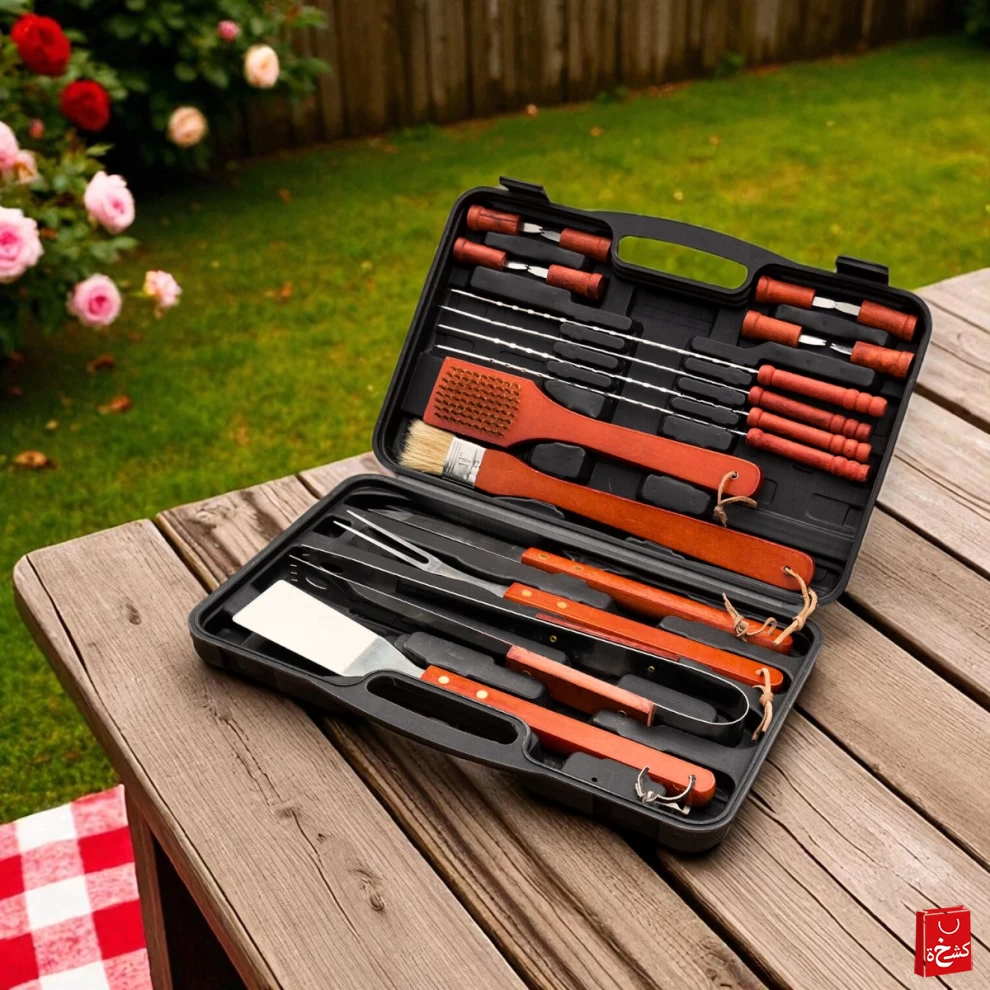 • 🍴 18 Essential BBQ Tools – Includes spatula, tongs, skewers & more