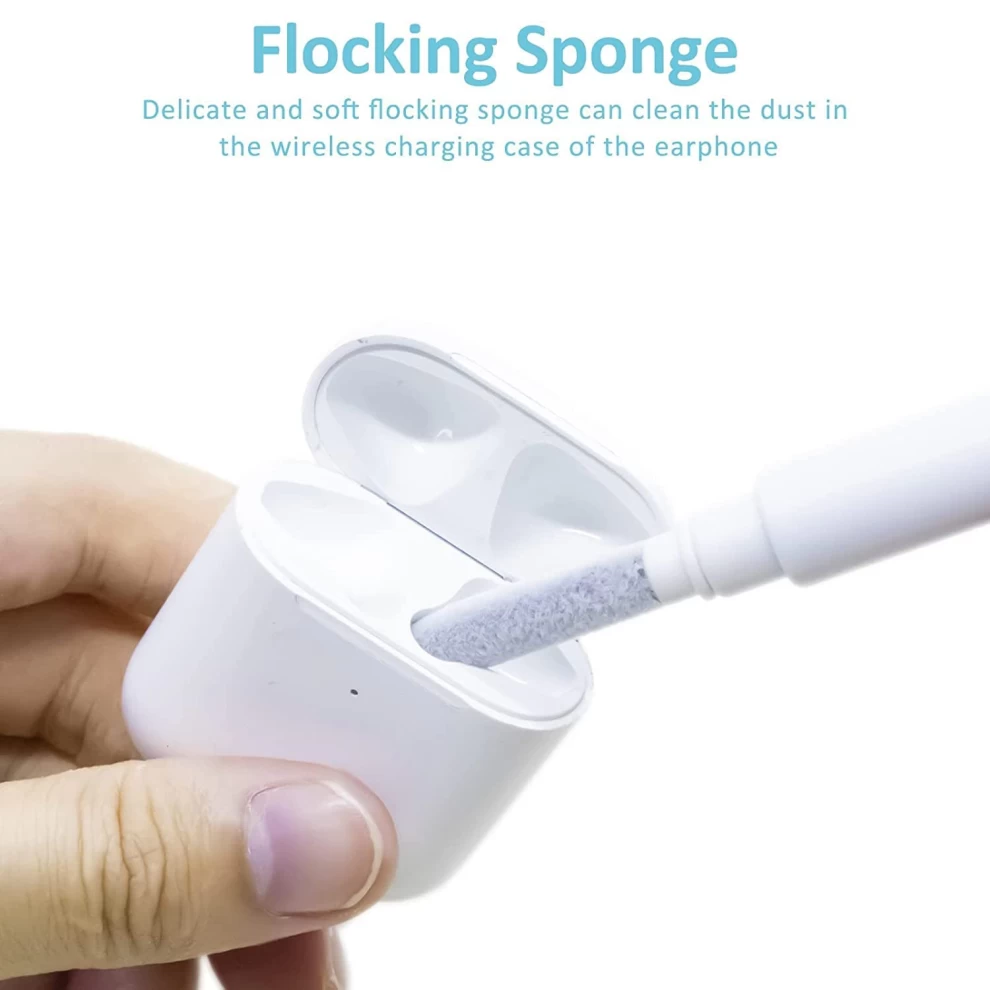 1️⃣ Use the sponge to wipe dust inside wireless earphone charging cases.