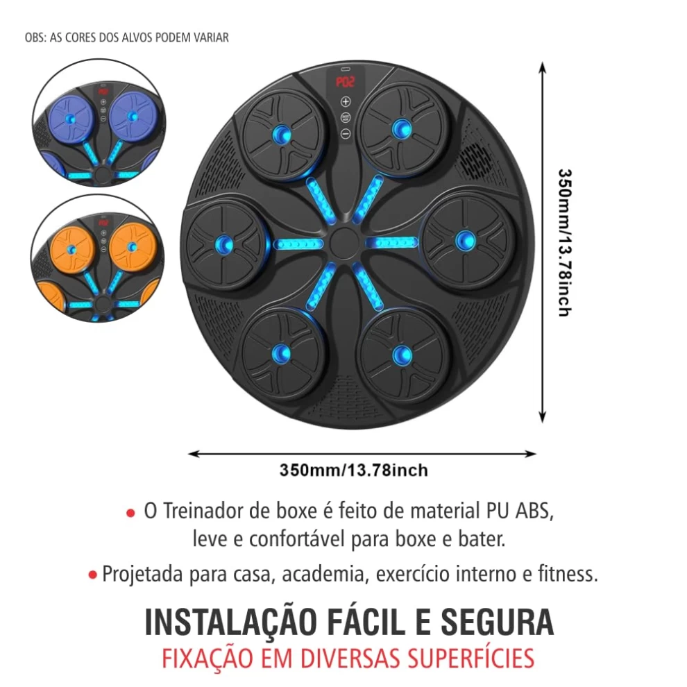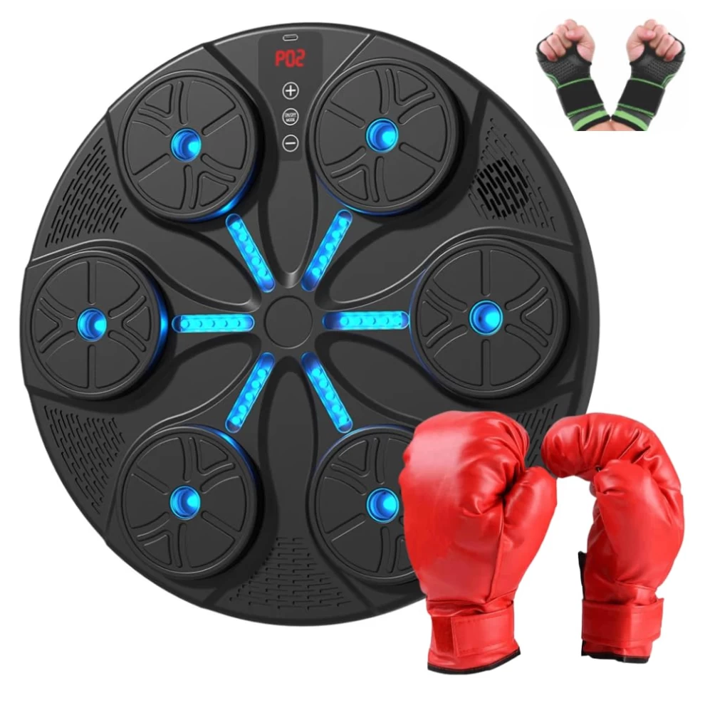 Own the Ring, Every Round Counts. This smart boxing machine offers a high-energy workout, combining music, speed response, and hand-eye coordination training. Equipped with LED lights and Bluetooth connectivity to play music while the lights guide your punches, enhancing coordination and fun as well. Ideal for all ages and skill levels for boxing, improve fitness, and stress relief. Elevate your training sessions and achieve your fitness goals with this ultimate boxing machine