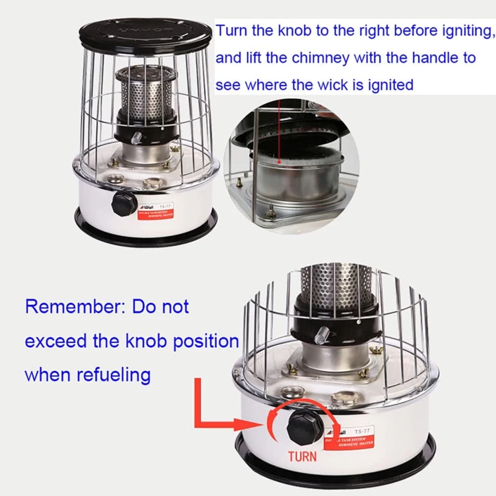 1️⃣ Fill heater with kerosene according to instructions