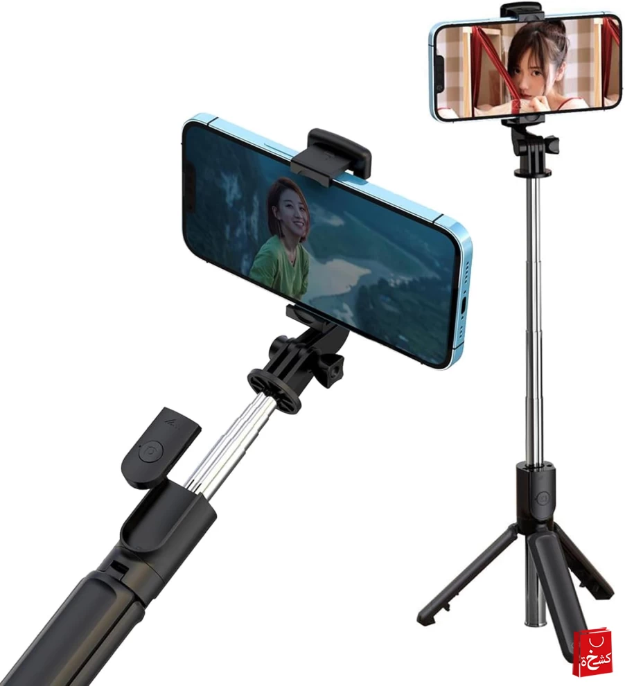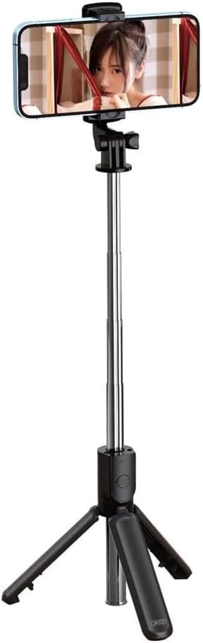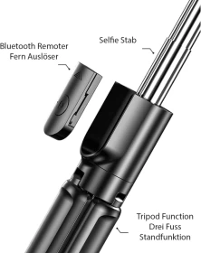 3-in-1 selfie stick tripod with Bluetooth remote control. Very good to hold with one hand. Or you can open the tripod and use it as a tripod for photo and video recording. Perfect for video photo recordings or live recordings for Tiktok or Instagram