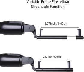 The selfie stick is adjustable in both short and long lengths from 19.5 cm to 70 cm. With the phone holder, you get the best selfie angle anytime and anywhere thanks to the 270° rotating function.