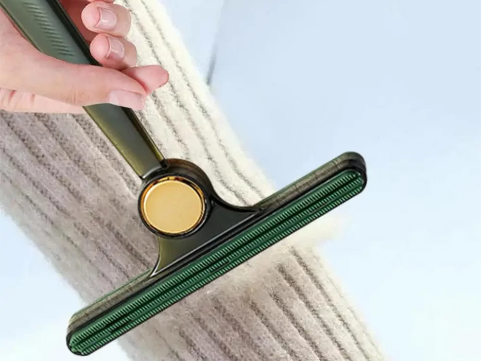 1️⃣ Hold the handle firmly and gently glide the metal edge over the fabric. ✋🧥