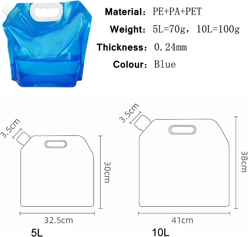 • 💦 5L Capacity – Ample volume for storing drinking water during outdoor trips.