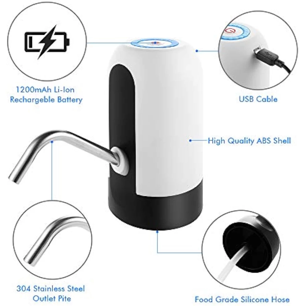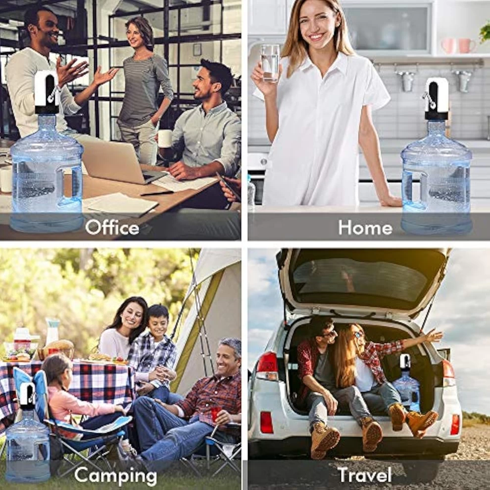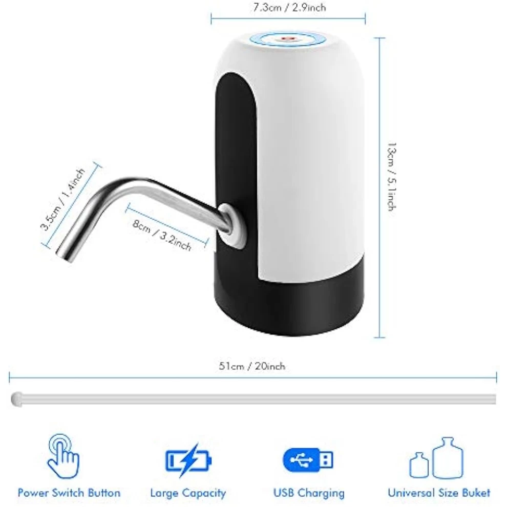 Stay hydrated with ease using this USB-rechargeable water bottle pump. Designed for home, office, travel, and outdoor use, this automatic dispenser fits most standard gallon bottles and offers one-touch operation for quick, spill-free water flow.