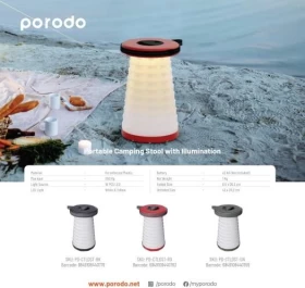 🪑 Porodo Portable Retractable Folding Telescopic LED Stool – Outdoor Camping & Travel 🪑