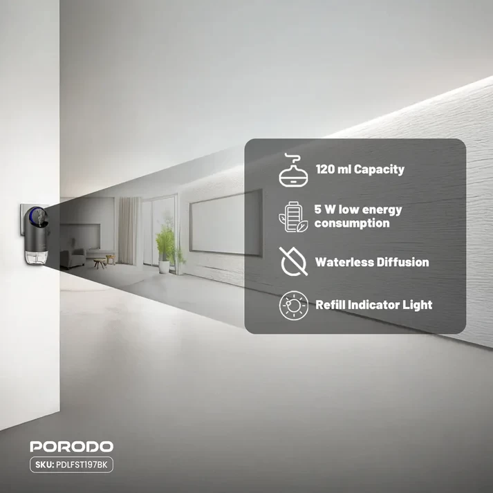 🌿 Porodo Lifestyle Wall Plug-In Essential Oil Diffuser | Compact & Stylish Aroma Freshener ✨