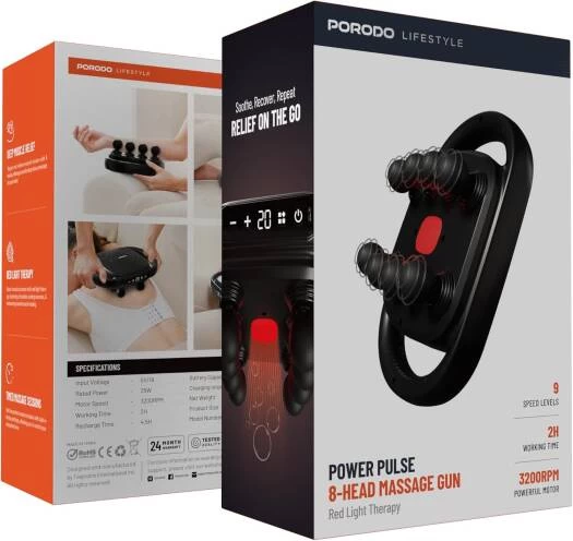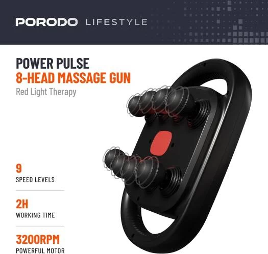Soothe sore muscles, recover faster, and boost circulation with the Porodo Lifestyle Power Pulse Massage Gun. Featuring 8 interchangeable massage heads and multiple speed levels, it’s designed to target every muscle group with precision. Ideal for athletes, office workers, and anyone who needs powerful relief at home or on the go.