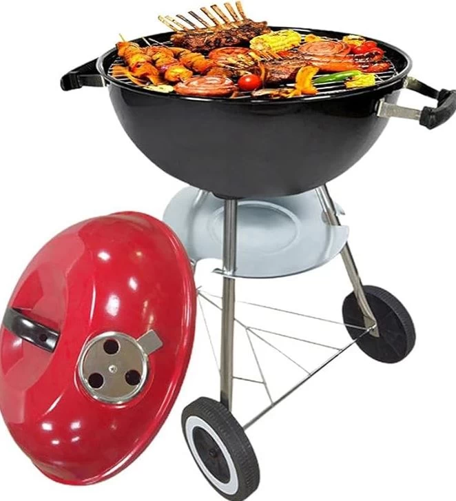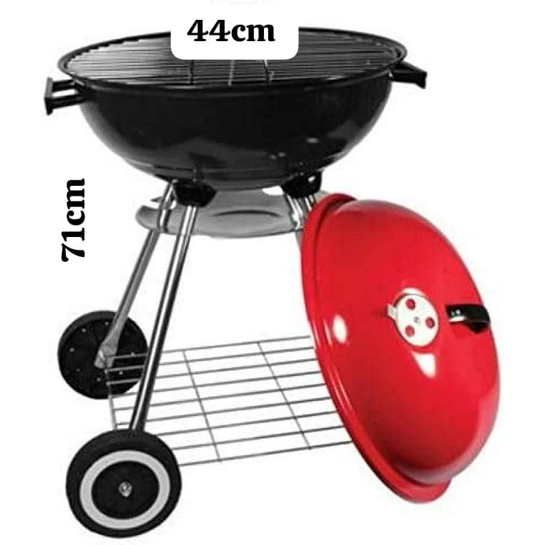 Round Kettle Charcoal Barbecue Grill 18 Inch – Red Lid
