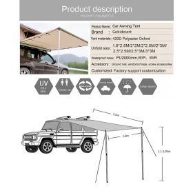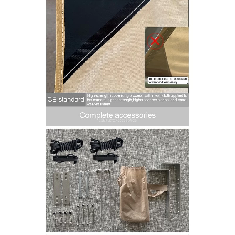 Upgrade your outdoor adventures with the HI-TEX car side awning, designed to provide instant shade, comfort, and protection. With a large coverage area and two additional extensions, it is perfect for camping, picnics, off-road trips, and beach outings.