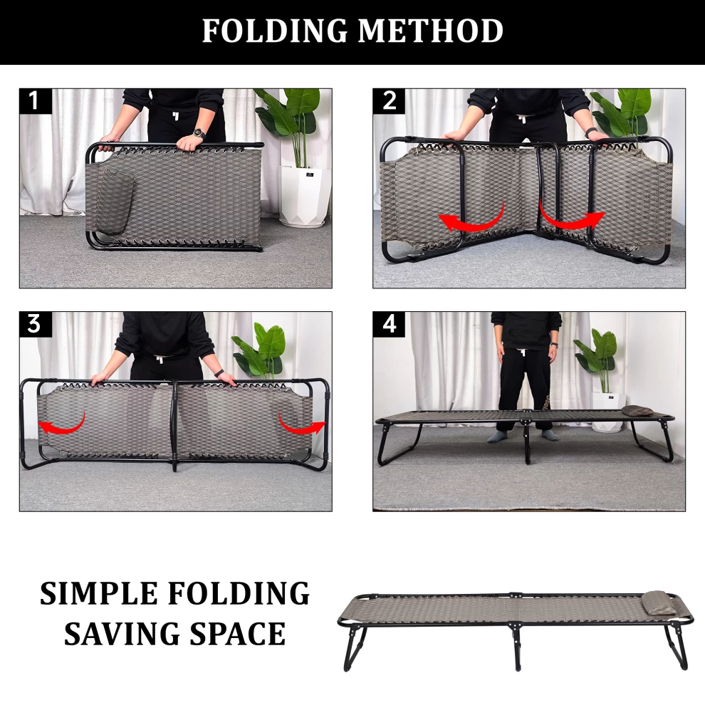 This Folding Bed is perfect for guests, camping, or temporary sleeping arrangements at home. Lightweight, foldable, and easy to store, it combines convenience with comfort for a restful sleep anywhere.