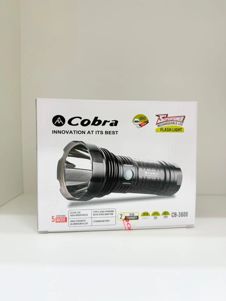 The Cobra CB-3600 Flashlight is built with high-quality materials and long-lasting LED technology for reliable long-term performance. Warranty and after-sales support depend on seller policy.