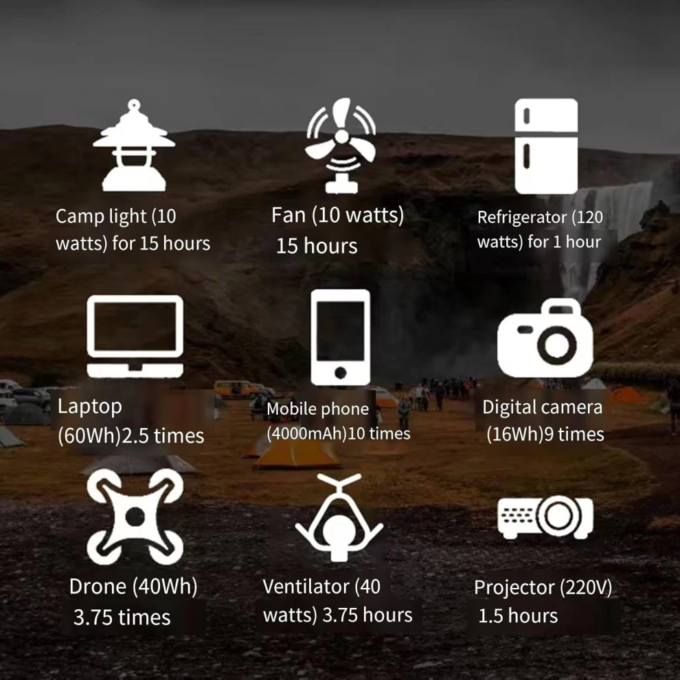 Stay powered anywhere with the 150W Portable Power Station, your reliable solution for camping, travel, emergencies, and home backup. Featuring a 220V AC output, built-in battery, and integrated LED light, this compact power supply keeps your essential devices running whether you're outdoors or facing a power outage.